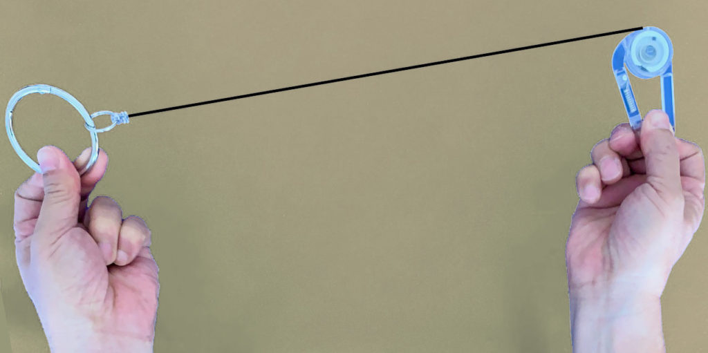 4.「リール式キーホルダー」で腕の開閉運動遊び