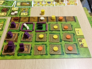 例えば,17世紀のヨーロッパで農業を営む『アグリコラ』(Lookout Games 邦訳版:ホビージャパン)では,ゲーム開始時,農場に畑も牧場もないうえに技術が進歩しておらず,食料を調達して飢えずに生き残ることが課題となる。これがなかなかに難しく,序盤は食いつなぐだけの時間が続くのだが,ルールが間違っているのではないかと不安になり始めた頃になってようやく畑を耕して麦や野菜が採れるようになり,牧場を作って動物を増やし,肉を焼いて食べることができるようになる。次第に,パンを焼く窯や便利な農機具が作られて農場はどんどん豊かになり,広く温かい家ができ,家族が増えてゆく。苦しい時期を乗り越え,限りある資源をやりくりして徐々に生活が楽になり,農場が立派になってゆく様子を体感するのは,数時間の道のりが全く長く感じないほど楽しく,実際に農家を営んでいるような気持になることができる。
