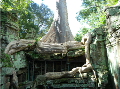 私が,カンボジアに赴き,はじめて首都プノンペンやアンコール・ワット遺跡群へ訪れたのは2011年のことである。およそ800年前から現存しているアンコール・ワット遺跡群は,9世紀から14世紀にかけてのクメール美術を今に伝え,1992年にユネスコの世界遺産(危機遺産リスト)の登録を受けている。現在,ユネスコや各国のNGOおよび現地遺跡修復家の保護を受けながら,当時の文化や宗教を色濃く残し,特に,12世紀末にジャヤーヴァルマン7世が建立したタ・プローム寺院の木々に圧倒されたことが鮮明に思い出される。寺院内には,遺跡とガジュマルの一種であるスポンの木が絡み合い,スポンの木の根は,遺跡を浸食すると同時に,遺跡を支える支柱となり,長い年月を経て,遺跡と木々はお互いを必要としている。この木々たちは,静かにカンボジアの歴史を生き,文化を見守ってきたことを慮ると,あらためて木はその国の風土を象徴する生命であることを実感する。