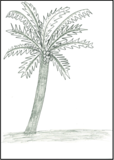 さて,筆者がはじめてカンボジアの大学生にバウムテストを行った時のことである。彼らが実に丁寧に時間をかけて描く様子や写実的描写に感激し,あまりのリアリティさに思わず<これまで絵を描くことは?>と聞くと,意外にもいずれのカンボジア学生は口を揃えて「絵を描いたのははじめて」と答えるのであった。調査当時のカンボジア国内の学校教育において美術教育はなく,絵を描く習慣がない事を教えてもらった。そして,カンボジアバウムは,日本人お馴染みの「りんごの木」はすっかり影を潜め,ヤシやバナナ,ココナッツなどのフルーツバウム(図1)が多く描かれていた。確かに,ひとたび都市部を離れると,農村地帯が広がり,南国特有のフルーツの木が至るところに覆い茂っており,フルーツバウムは,彼らの生活と密接につながり,身近なものであること,日本の学生がこぞって「りんごの木」を描くありようとの違いに驚いたのであった。