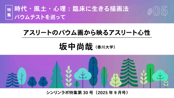 筆者は,日本心理臨床学会の自主シンポジウム(2024)において,中込,鈴木らの先達に加え,コッホのバウムテスト第三版(1957)の邦訳者の一人である岸本寛史(静岡県立総合病院)らとともに「スポーツと心理臨床」をテーマに,アスリートに対してバウムテストや風景構成法などの描画法を援用することの臨床的意義について検討している。その中で,岸本は,「(思うように身体が動かせないなど)アスリートのパフォーマンスに力動的な無意識が介入してくるものだから思うようにいかない」と指摘するとともに「描画は,競技との関係を視覚的,イメージとして捉えることができる」とアスリート臨床に描画法を用いることの臨床的意義に言及する。