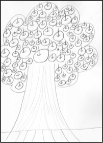 筆者は,10代のアスリートに対してバウムテストを行う機会が多く,その印象に基づくと,図5のように「幹の太さ」,「実の大きさやその数の多さ」,「画用紙からはみださんばかりの大木」,などの特徴が見られる。また,描画後のPDI(Post Drawing Interrogation:描画後の質問)では,「ジブリなどに出てきそうな森の中の大きな木」,「たくさんの実や虫など生命が集まって生活している大きな木」,「この木は,根が太く,とても大きく実がたくさんなる木でいろんな人から親しまれ,愛される木」,「草原の中にあって,嵐にも負けない木」など,多種多様なイメージを投影する。