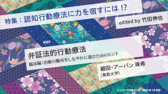 たとえば,クライエントが心理面接への遅刻やキャンセルを繰り返すと,「治療に対して消極的だ」と感じ,「このアプローチでいいんだろうか?」と不安に思うかもしれない。また,「こんな治療は意味がない!」と声を荒げたときには,「拒否的な態度だ」と受け取り,「なんとかしなくては」と焦って,治療に取り組むよう説得したくなる場面もあるだろう。そんなとき,弁証法的視点が助けになる。「治療に乗り気でない部分が70%くらいある一方で,どこかで助けを求めている気持ちも10%くらいはあるのかもしれない」と捉え直すことで,少し冷静さを取り戻せるかもしれない。すると,「なぜこのような行動を取るのか」と背景に目を向ける余裕が生まれてくるだろう。